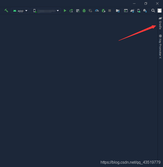 在 Android Studio 中点击 Gradle 选项卡,默认在 Android Studio 的右上角,如图所示。