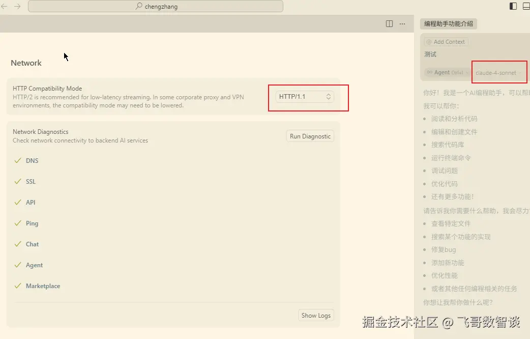 点击“Run Diagnostic”,如果所有项检测通过,那 AI Chat 一般就没什么问题了。