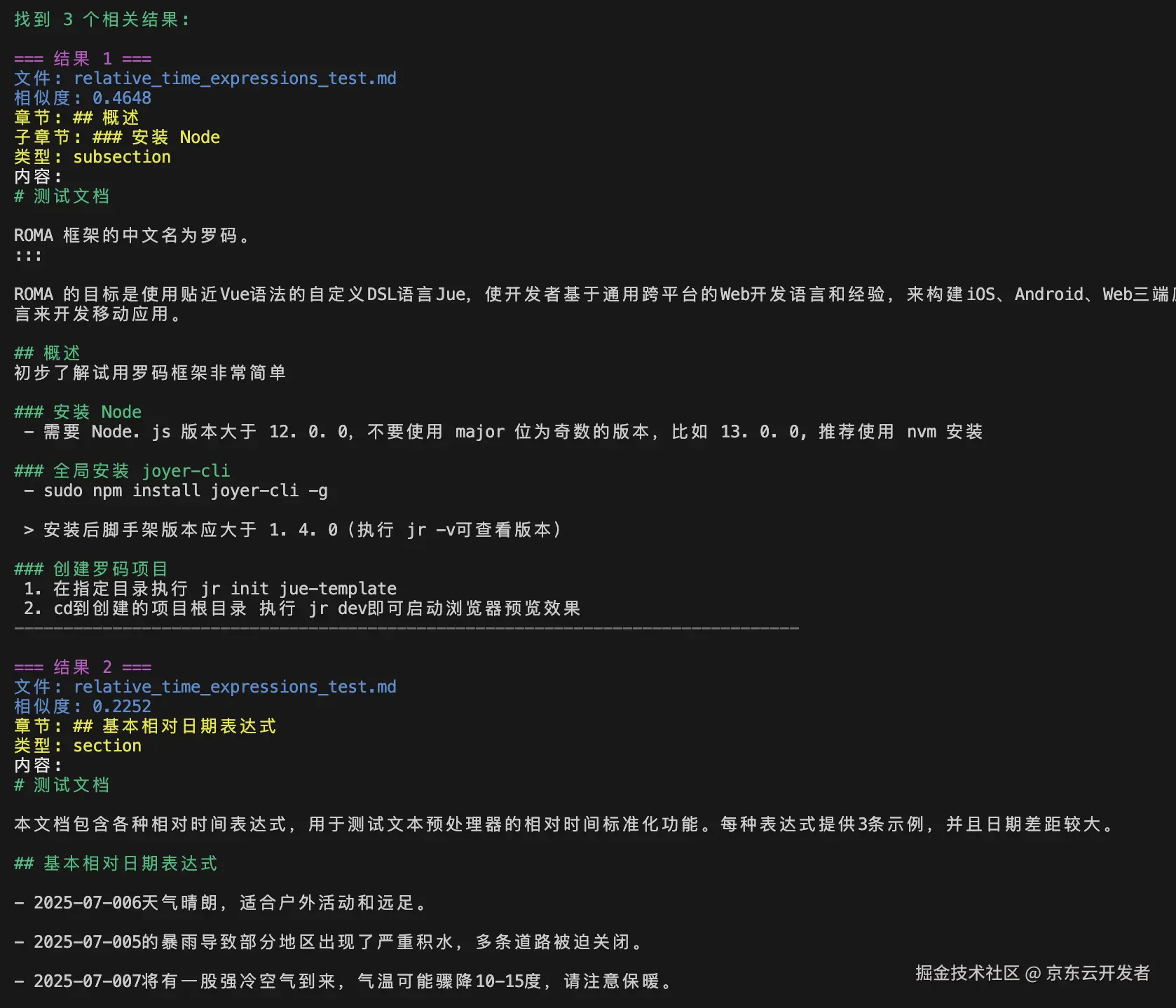 [ { "chunk_id": "doc1_chunk1", "text": "# 什么是 ROMA?\nROMA 是一个全自主研发的前端开发基于自定义DSL(Jue语言),一份代码,可在iOS、Android、Harmony、Web端运行的跨平台解决方案。", "vector": [0.041, -0.018, 0.063, ..., 0.027],