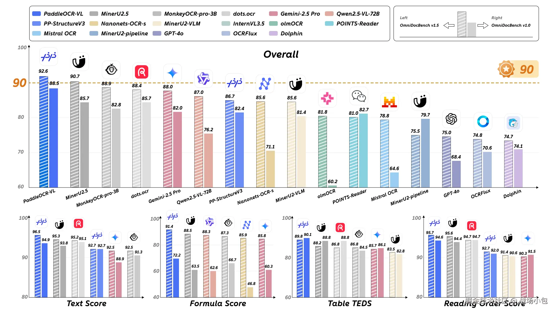 在一段时间内,都一直盯着 PaddleOCR 的最新进度,昨天,百度发布并开源自研多模态文档解析模型 PaddleOCR-VL,该模型在最新 OmniDocBench V1.5 榜单中,综合性能全球第一,四项核心能力SOTA,模型已登顶HF全球第一。