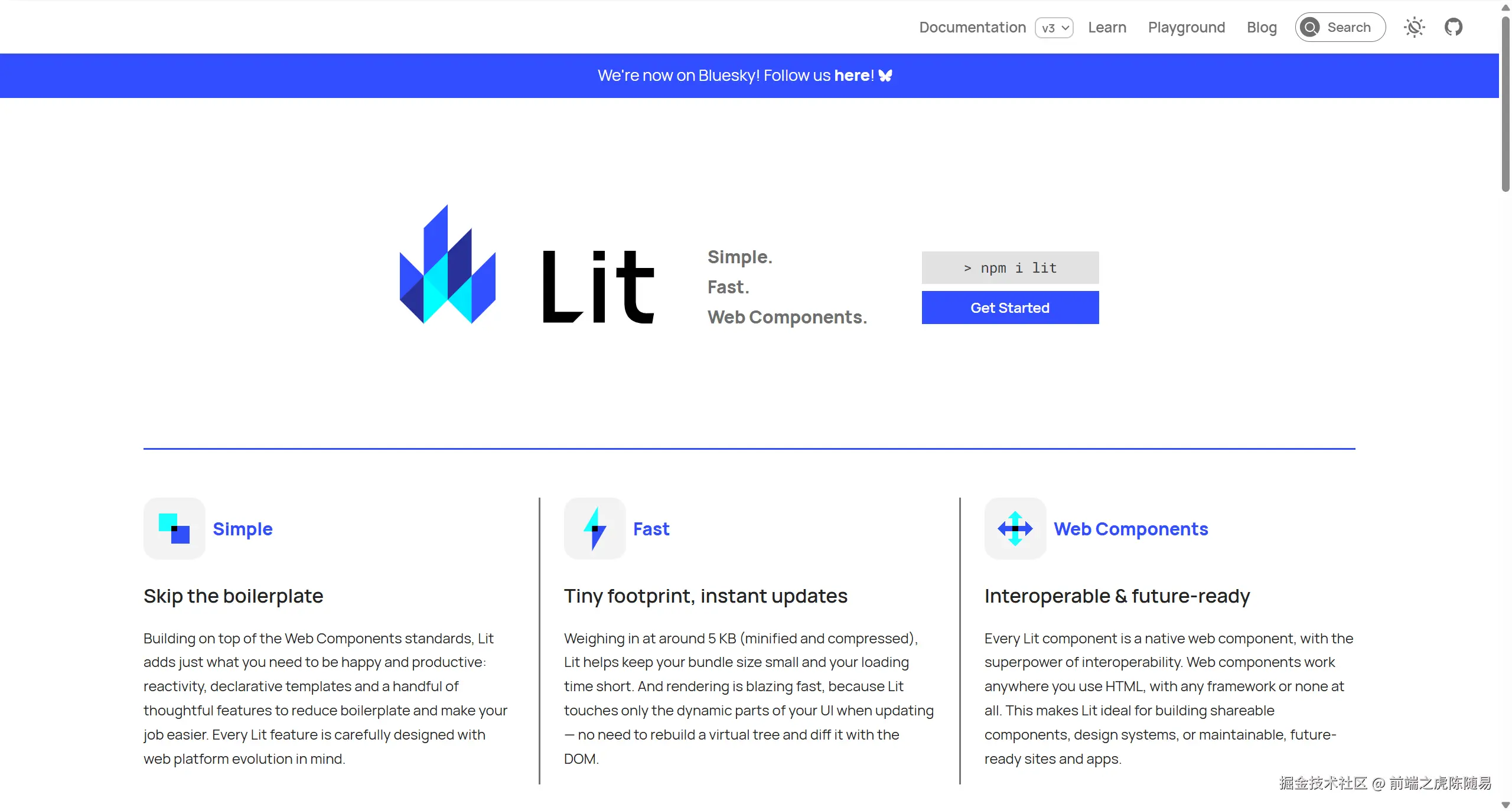 目前的主要版本是基于 Lit 这个框架开发的,也就是前端标准的 Web Components 技术。