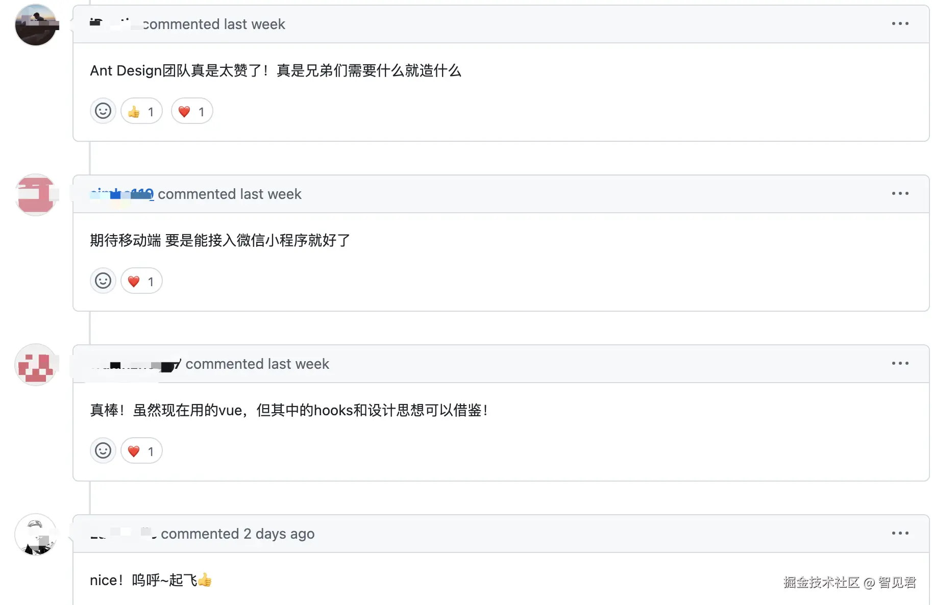 看了网友的评论,看来大家还是需要的!当前的 Ant Design X 只支持 React 项目,看来 Vue 开发者要羡慕了...