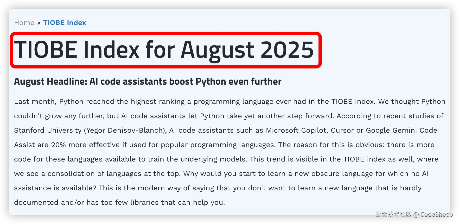 略想了一下才发现,自己好像有大半年都没有关注过 TIOBE 社区了。