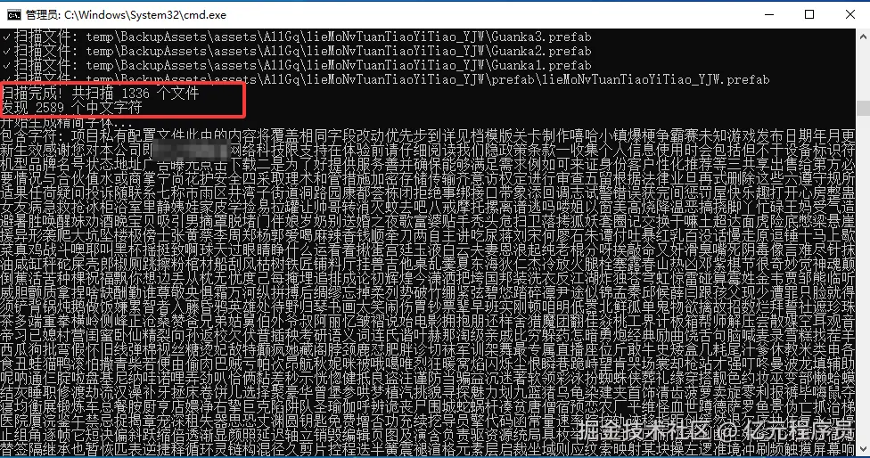 要提取中文字,我们只需要按照上面的原理,遍历我们的游戏项目中的游戏配置、预制体、场景和代码进行匹配即可。
