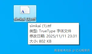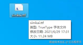 但是,外部字体库通常是完整的字库,体积非常的大,例如完整的simkai字体库就达到了11.24MB。