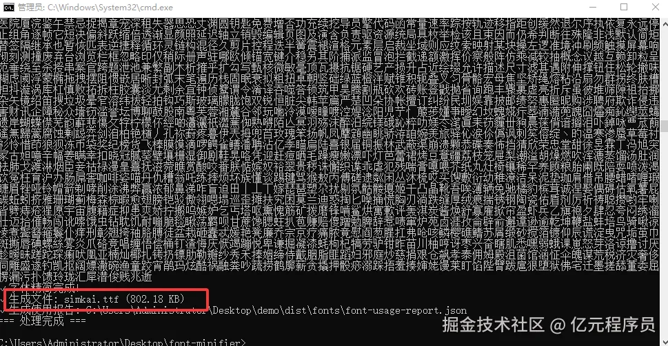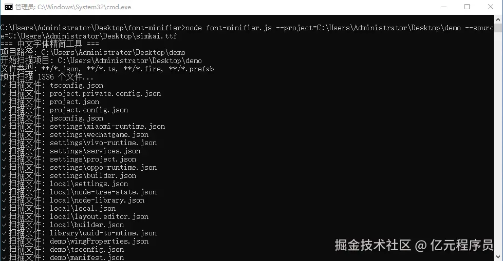 通过node font-minifier.js --project=C:\Users\Administrator\Desktop\demo --source=C:\Users\Administrator\Desktop\simkai.ttf传入工程目录和原字体路径即可。