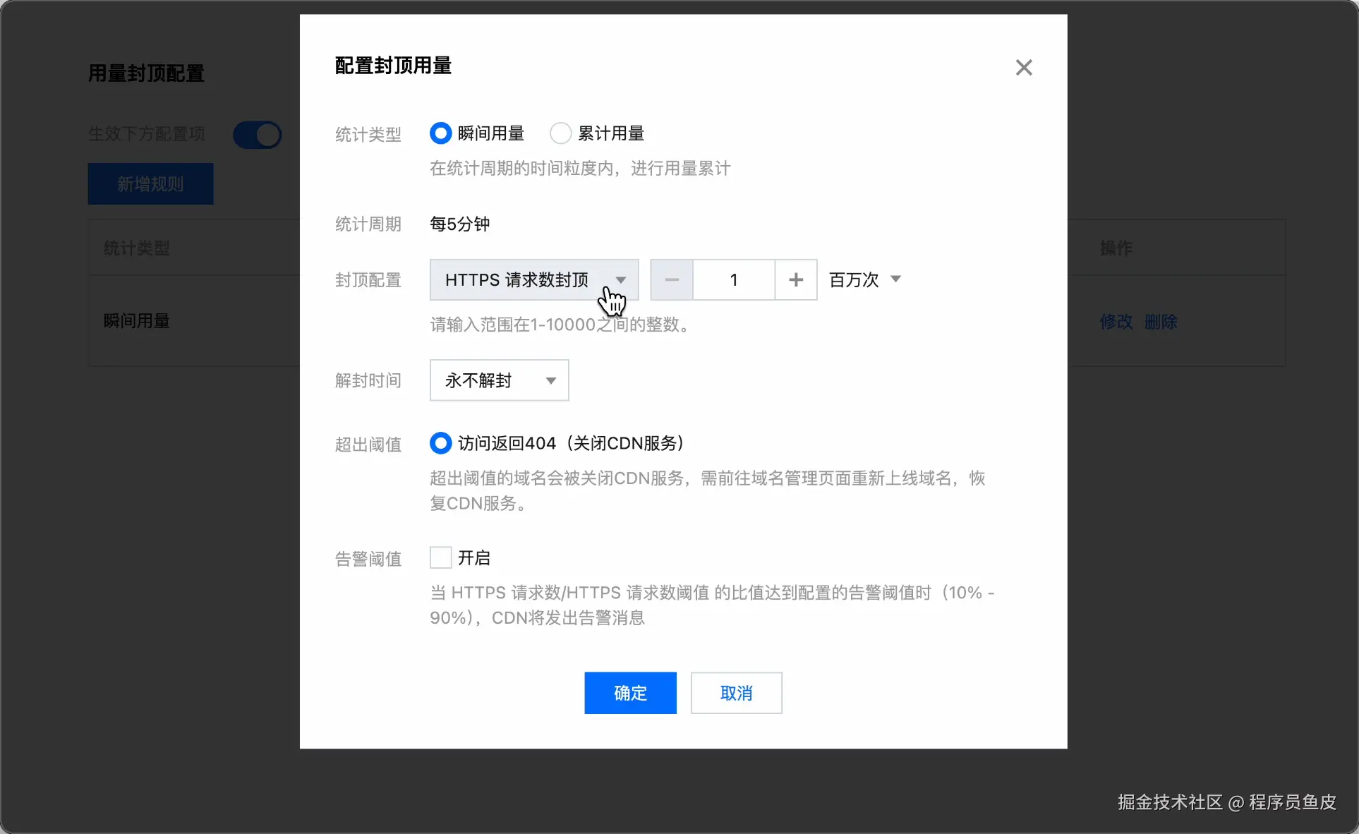 2)还要配置 CDN 的流量告警,超过阈值及时得到通知