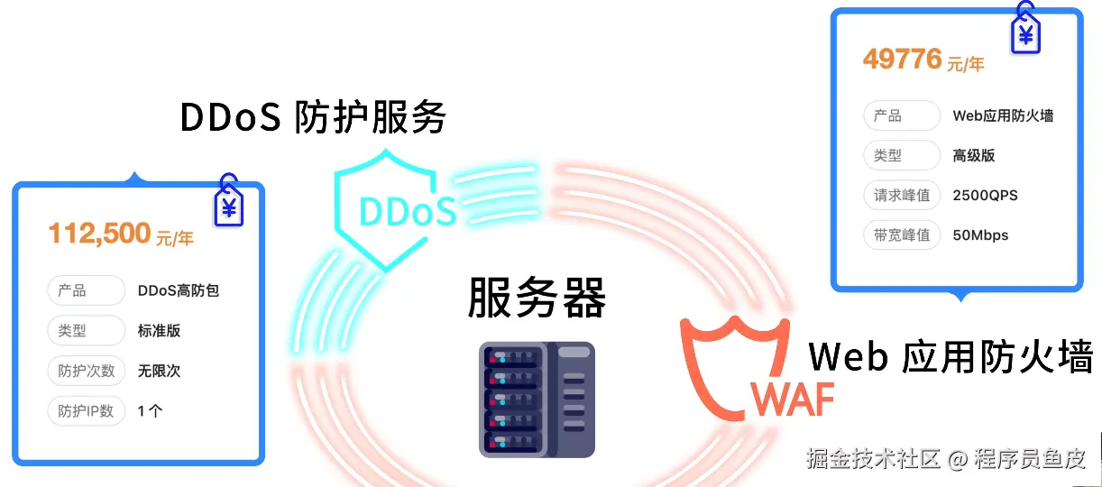 鱼皮笑了:好消息是,有些云服务商会提供一点点免费的 DDoS 基础防护,还有相对便宜的轻量版 DDoS 防护包。