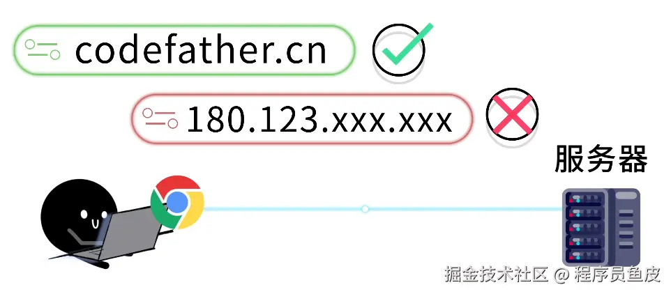 鱼皮:首先,你得有个 域名 给用户访问吧?总不能让人家记你的 IP 地址吧?
