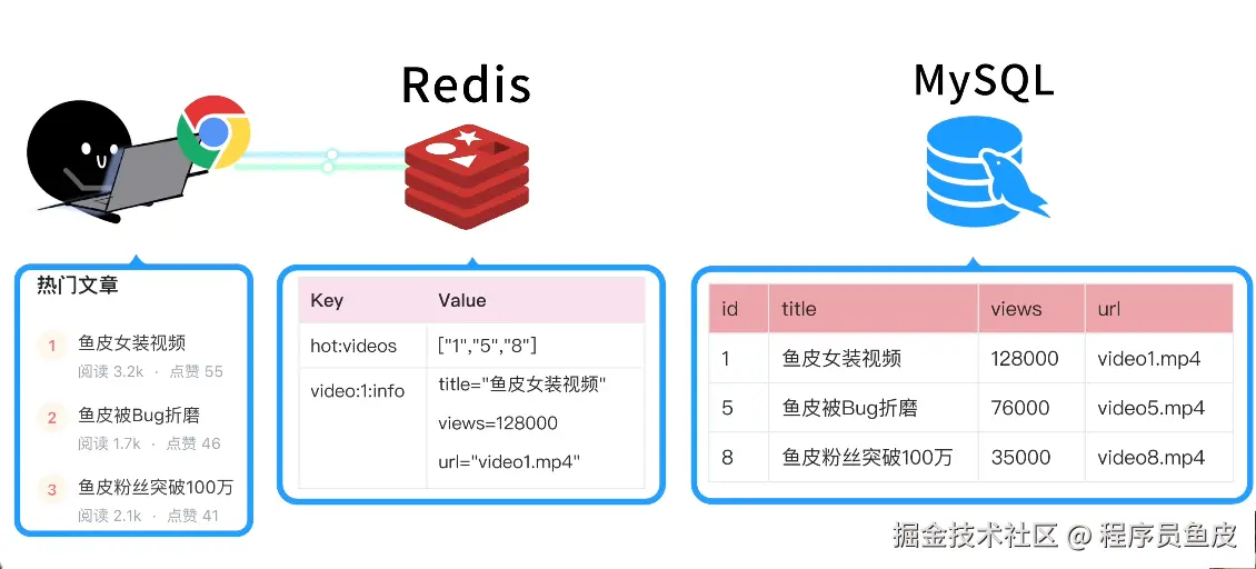 鱼皮:对了,我还建议你加个 Redis 缓存。