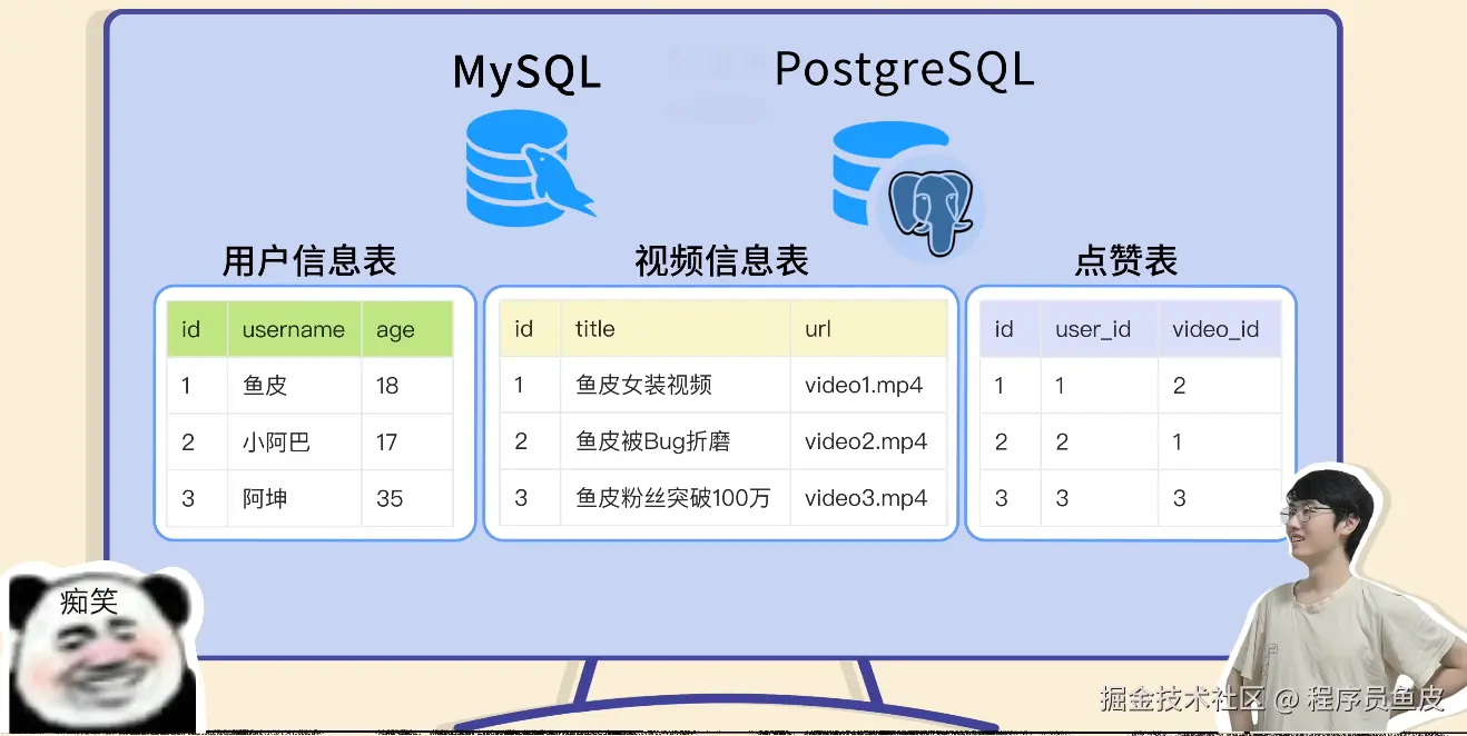 有了服务器,还得有数据库,用来存储网站的用户信息、视频信息、评论点赞这些数据。