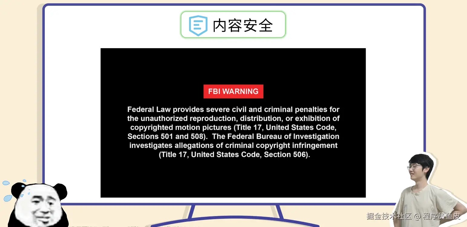做视频网站要面对两大安全威胁。第一个是 内容安全,你总不能让用户随便上传违规视频吧?万一上传了不该传的内容,网站直接就被封了。