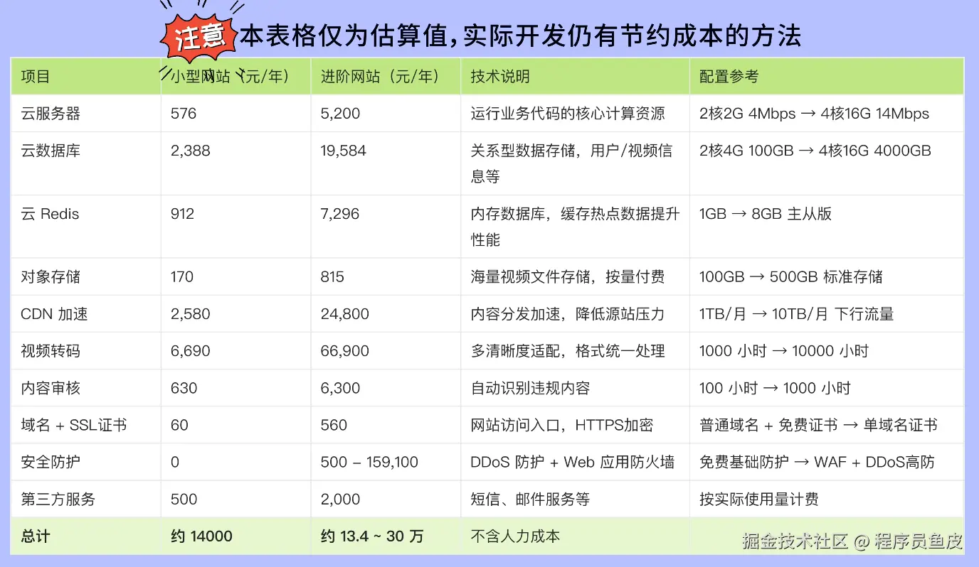 不过我做过可以看视频的、技术栈完全类似的 编程学习网站,所以很清楚这类网站的成本。