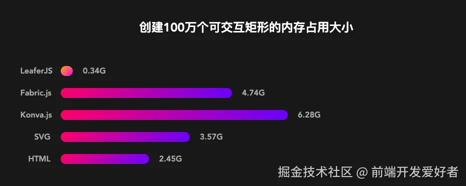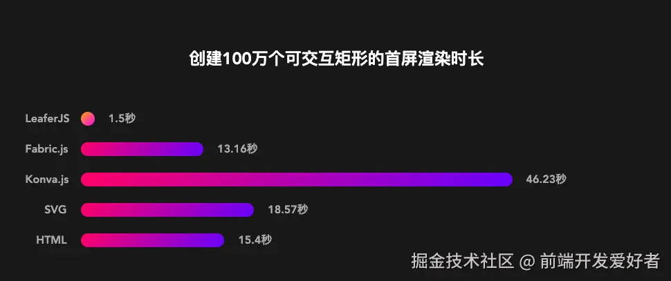LeaferJS 最最核心的一点就是性能至上,和目前市面上比较流行的 Canvas 库对比:
