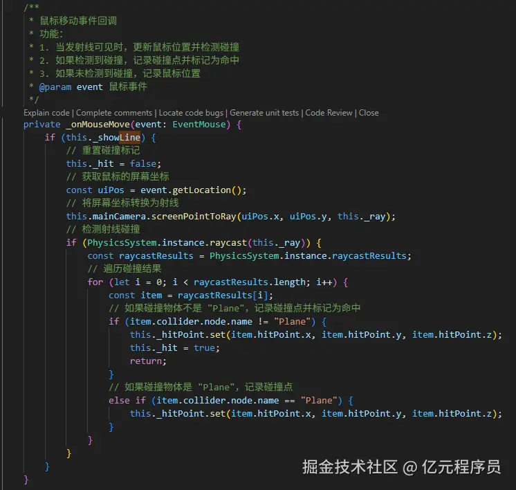 通过鼠标事件和射线检测,确定激光的方向和目标。