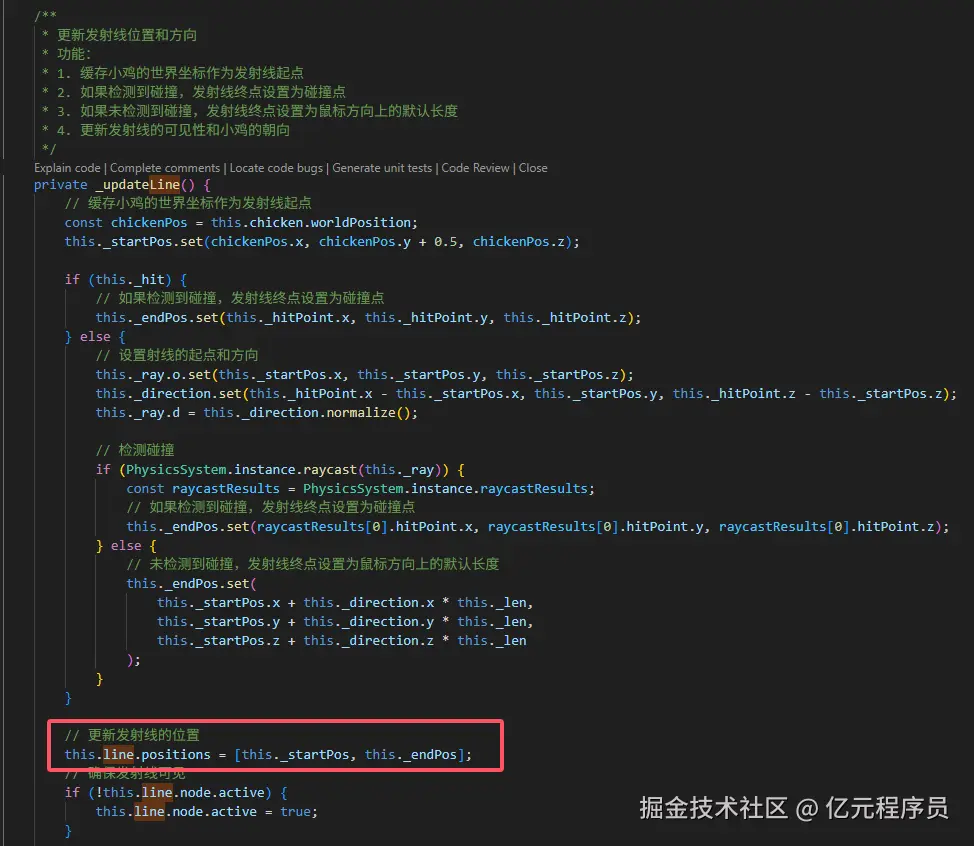 计算出来激光的起点和终点,对Line组件的positions进行赋值。