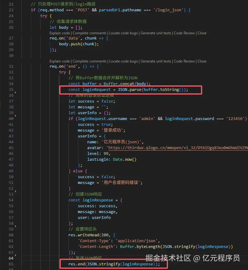 服务端做一下简单的处理,解码采用JSON.parse(buffer.toString()),编码采用JSON.stringify(loginResponse)。
