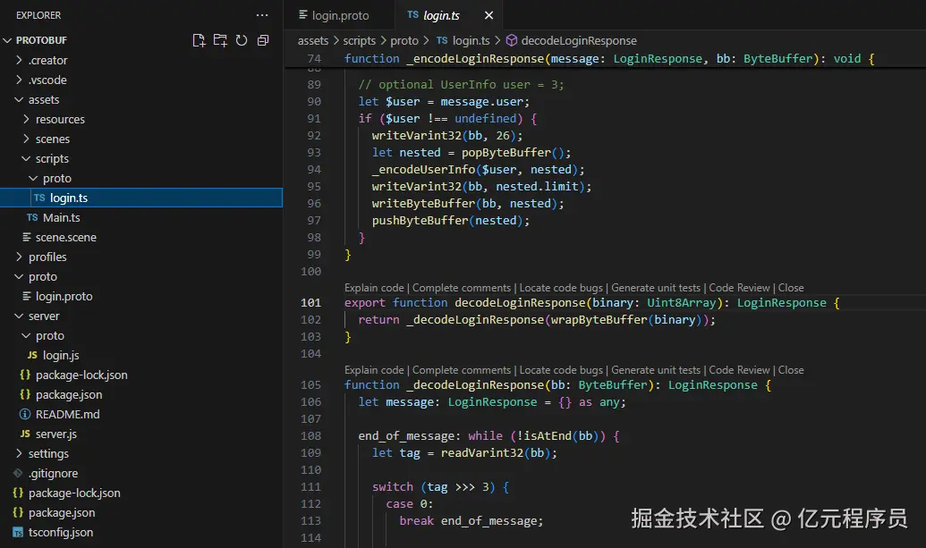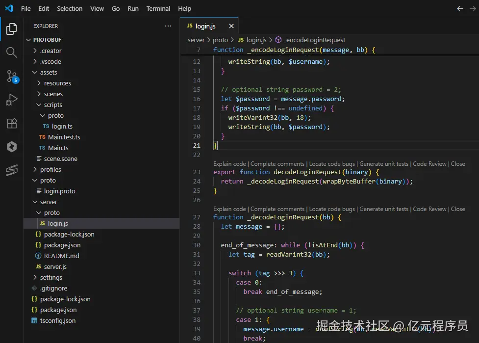 首先通过pbjs ./proto/login.proto --ts ./assets/scripts/proto/login.ts生成一下ts代码。