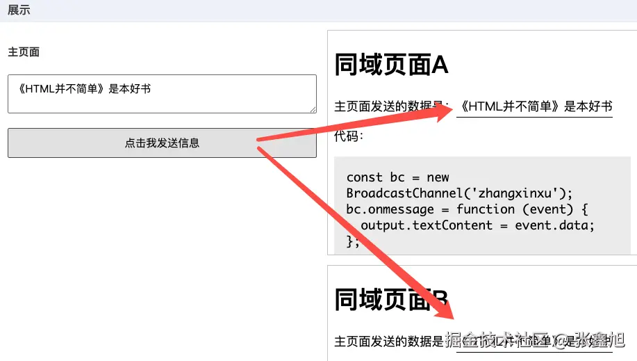 更多内容可以参阅此文:“Broadcast Channel API简介,可实现Web页面广播通信” —— http://www.zhangxinxu.com/wordpress/?…