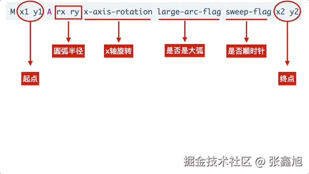 圆弧的SVG指令是A,语法如下: