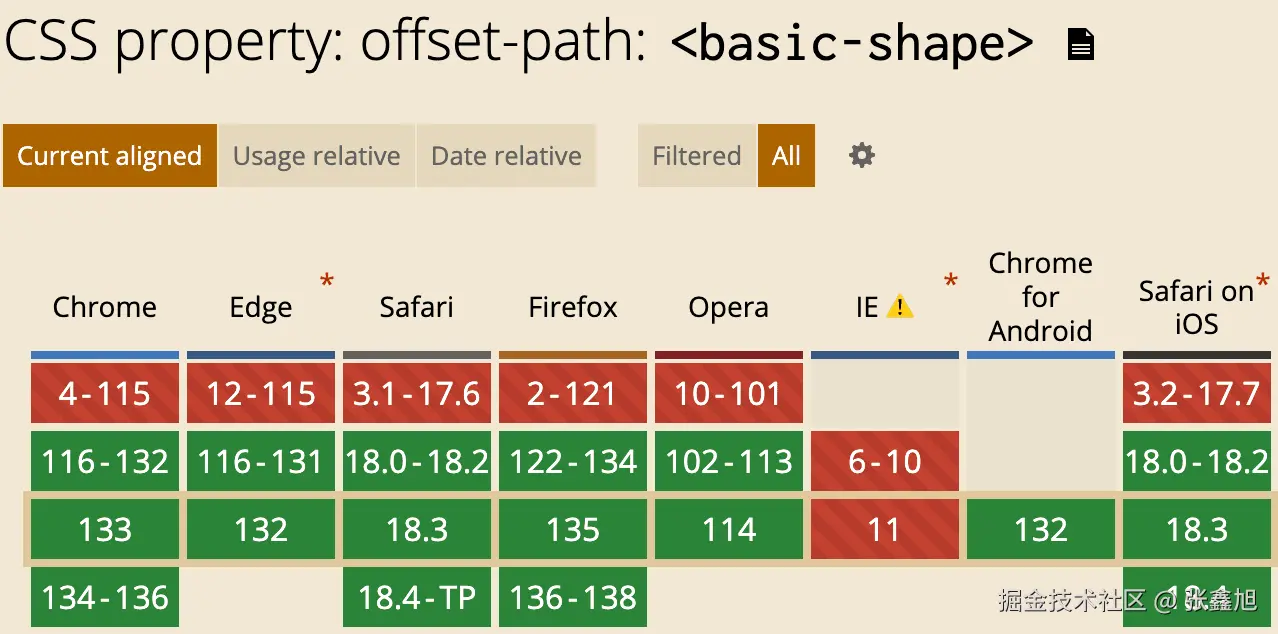 从Safari 18开始,CSS offset-path属性所有现代浏览器全面支持了。