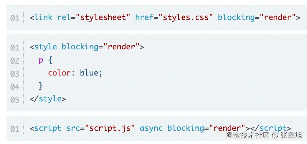 更多内容参见我撰写的这篇文章:“光速了解script style link元素新增的blocking属性” - http://www.zhangxinxu.com/wordpress/?…