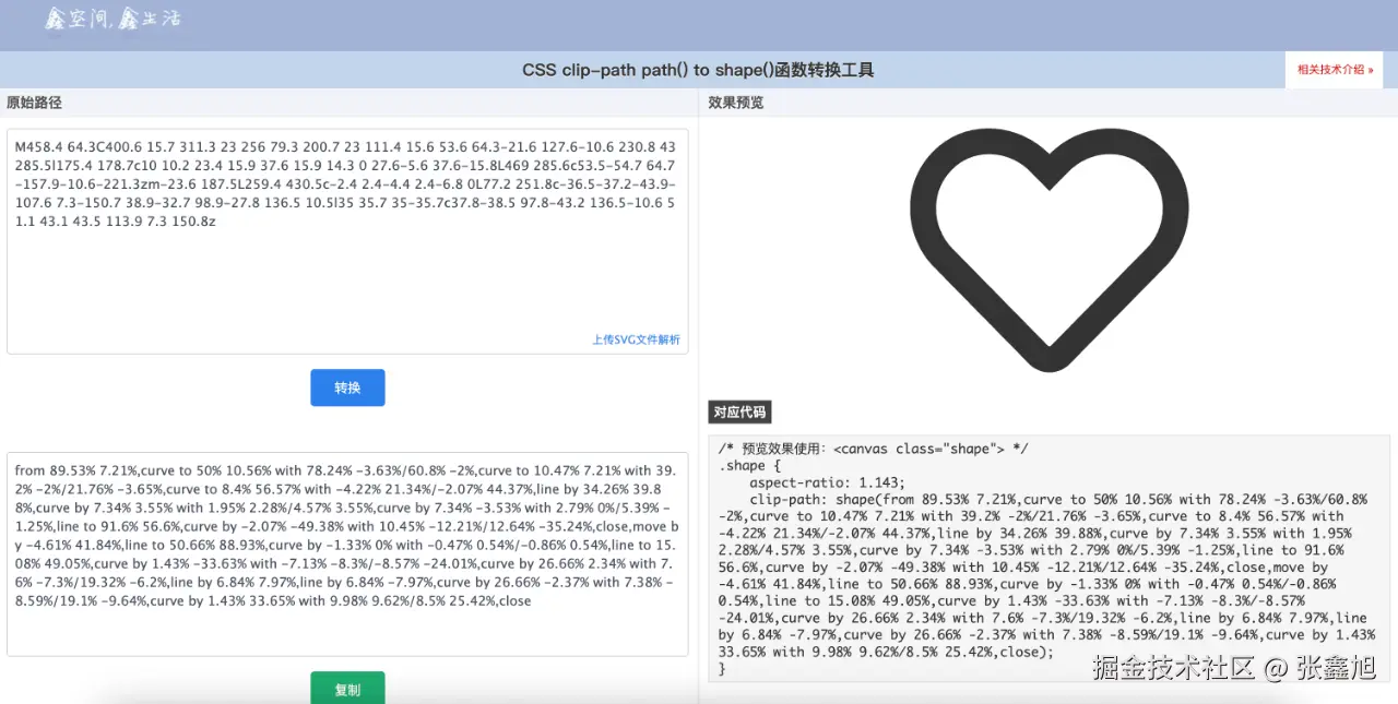 对此,我还专门开发了一个CSS clip-path path() to shape()函数转换工具 - http://www.zhangxinxu.com/sp/path2sha…