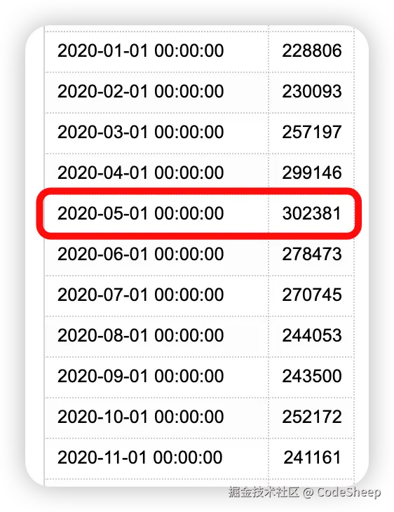 从数据上来看,Stack Overflow 最高光的顶峰时刻出现在 2020 年,尤其是 2020-05-01 这个时间节点,数据来到了 302381,这也是数值的最顶峰。