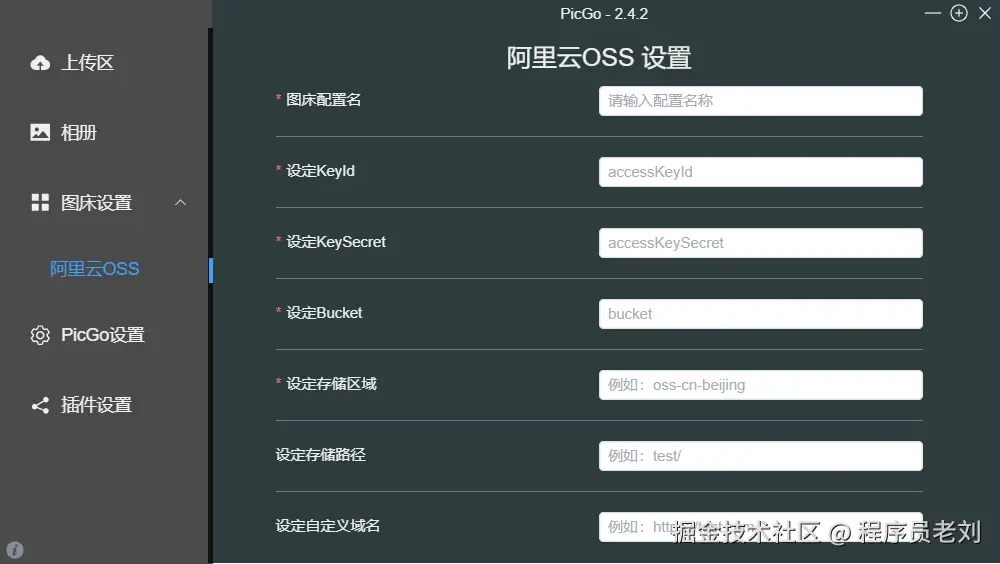 - 打开 PicGo -> 图床设置 -> 阿里云 OSS。
