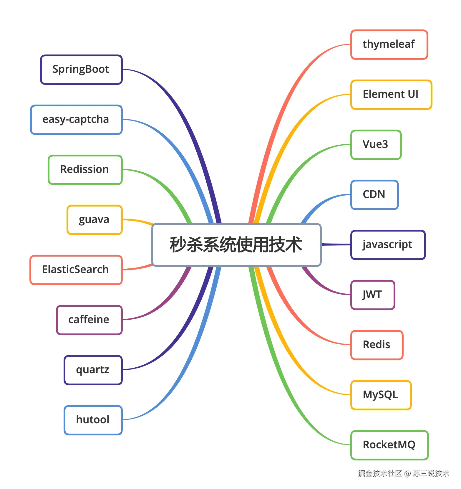 目前使用的技术有:SpringBoot、Redis、Redission、lua、RocketMQ、ElasticSearch、JWT、freemarker、themelaf、html、vue、element-ui等。