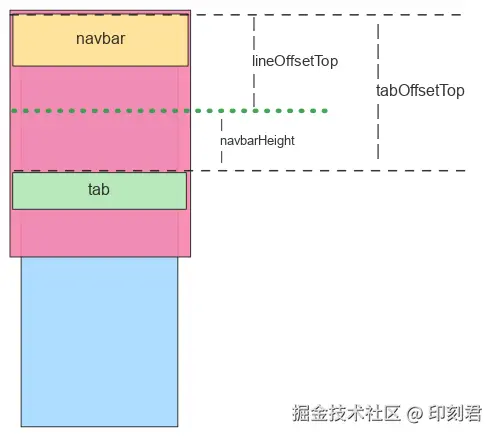 navbarHeight的位置。因此,它距离页面顶部的距离lineOffsetTop为:lineOffsetTop = tabOffsetTop - navbarHeight