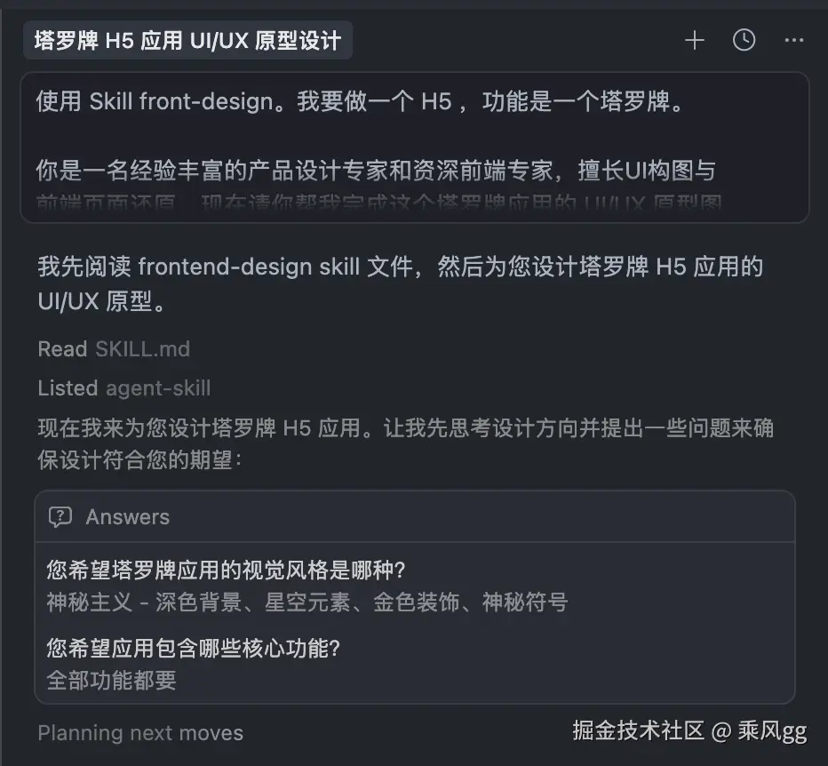 最近发现一个 AI 提效神器 ——Skills,用它配合 Cursor 开发,我仅用 5 分钟就帮女友做出了一款塔罗牌 H5 APP!在说如何操作之前,我们先大概了解下 Skills 的原理