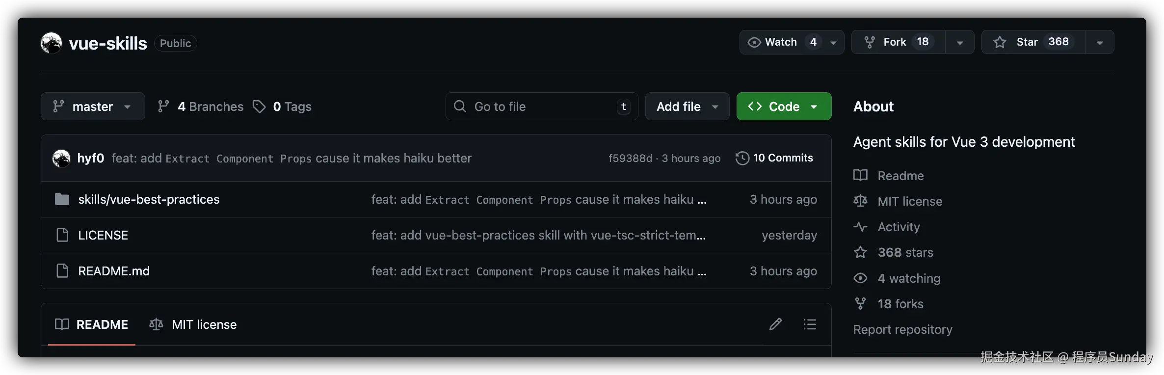 最近不少同学在讨论 Skills。就连 Vue 也出了 Vue Skills 这样的一个库。