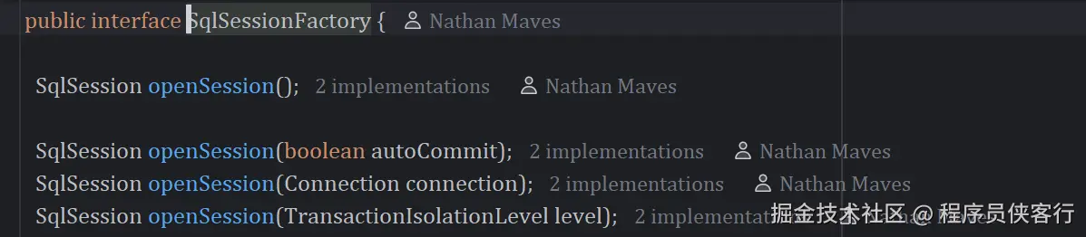 SqlSessionFactory负责创建SqlSession,提供了多个重载实现。