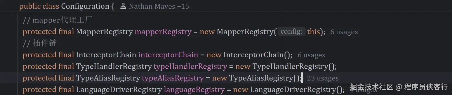 MyBatis 大量使用建造者模式解决「复杂对象初始化」问题,比如 SqlSessionFactoryBuilder、XMLConfigBuilder、MapperBuilderAssistant 等。