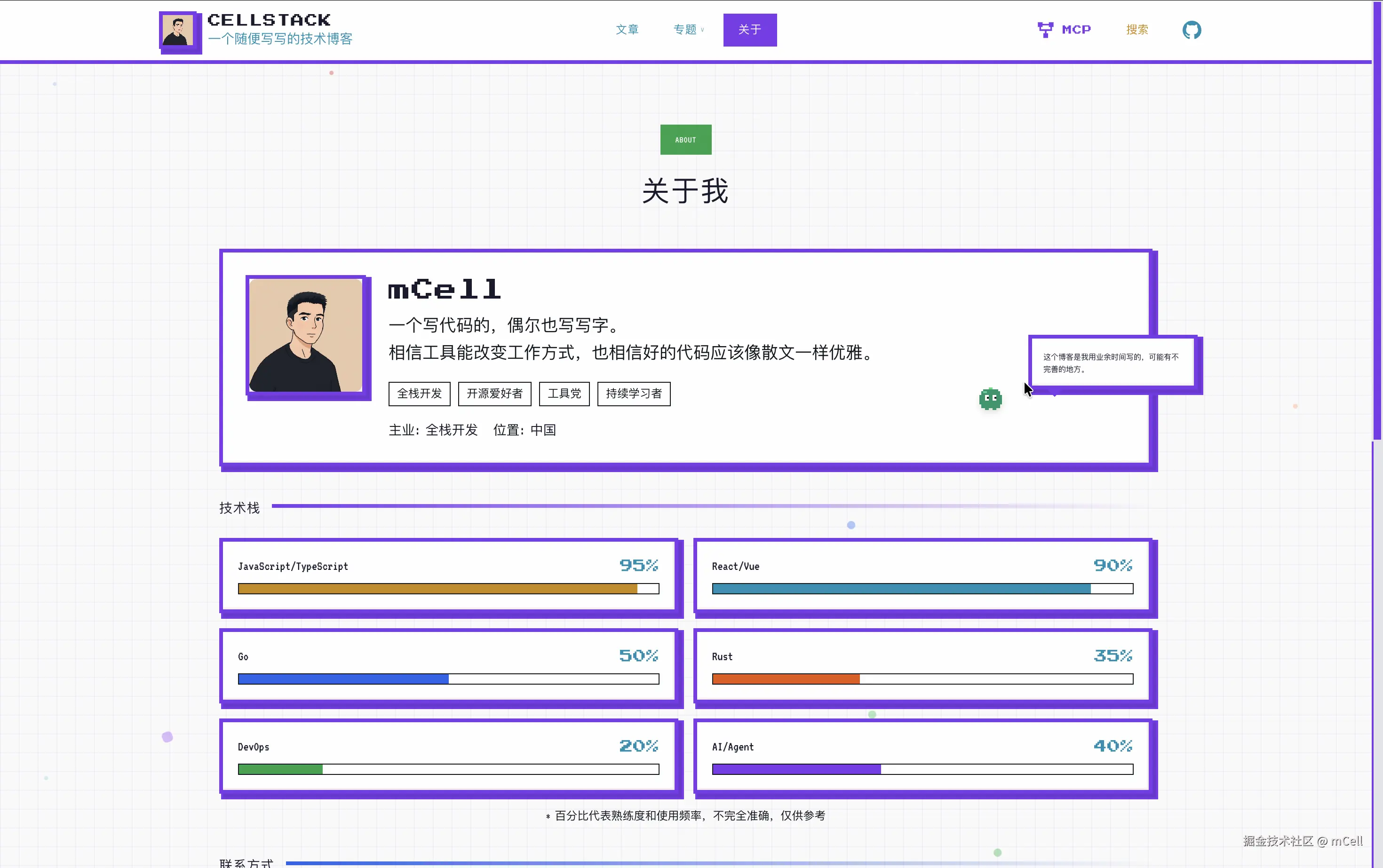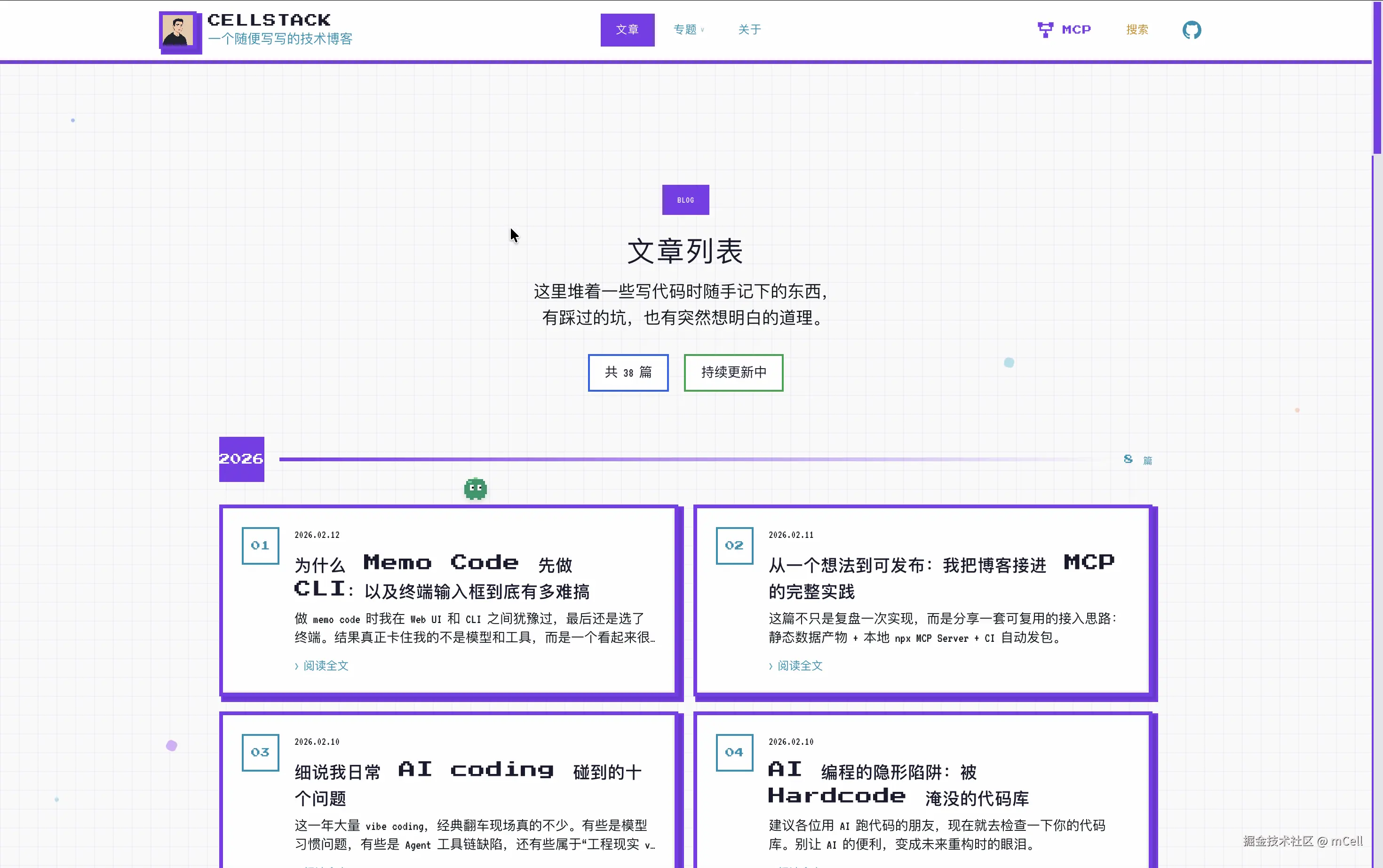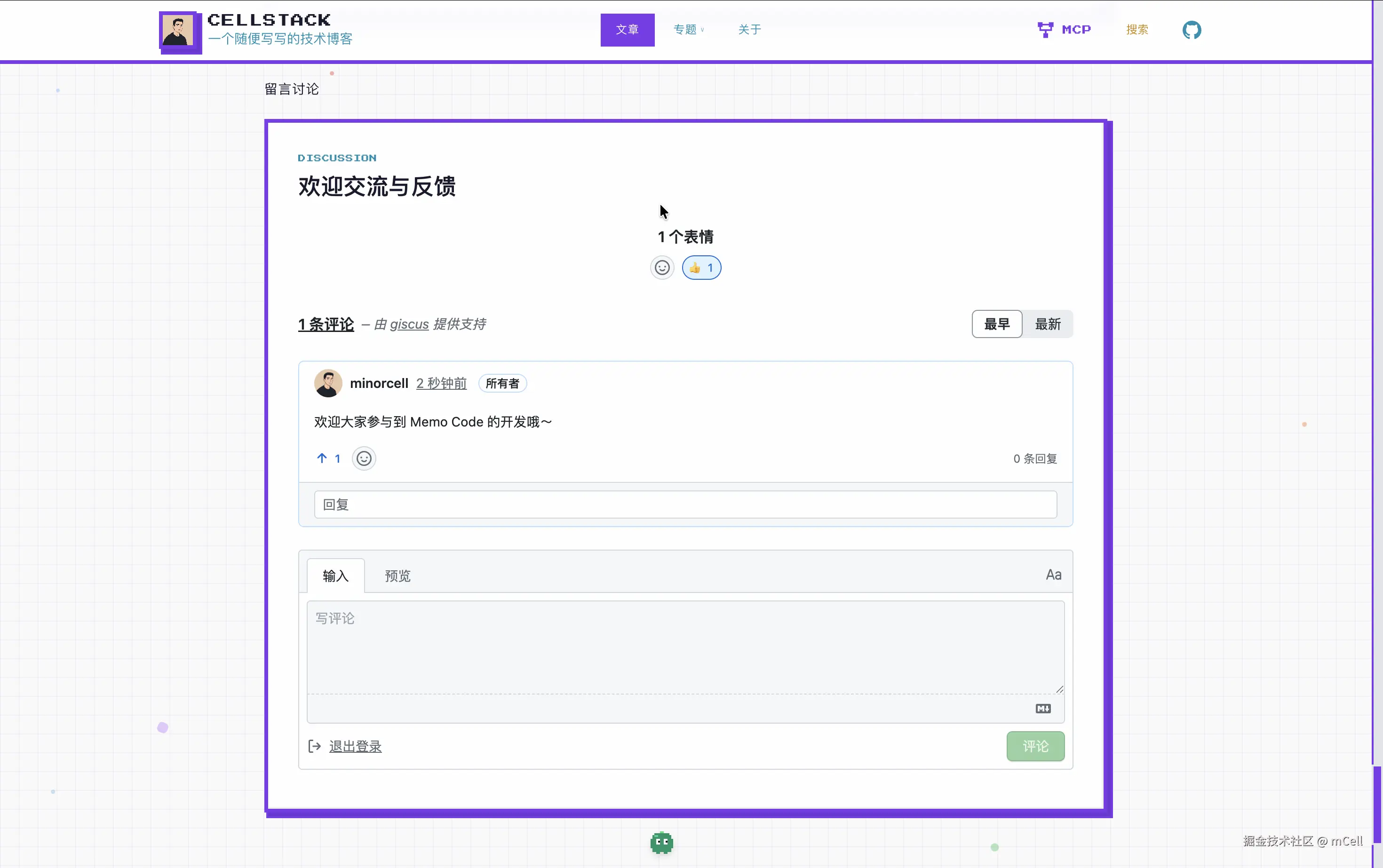 站点地址:stack.mcell.top,包含完整的:写作、评论、部署、MCP支持...