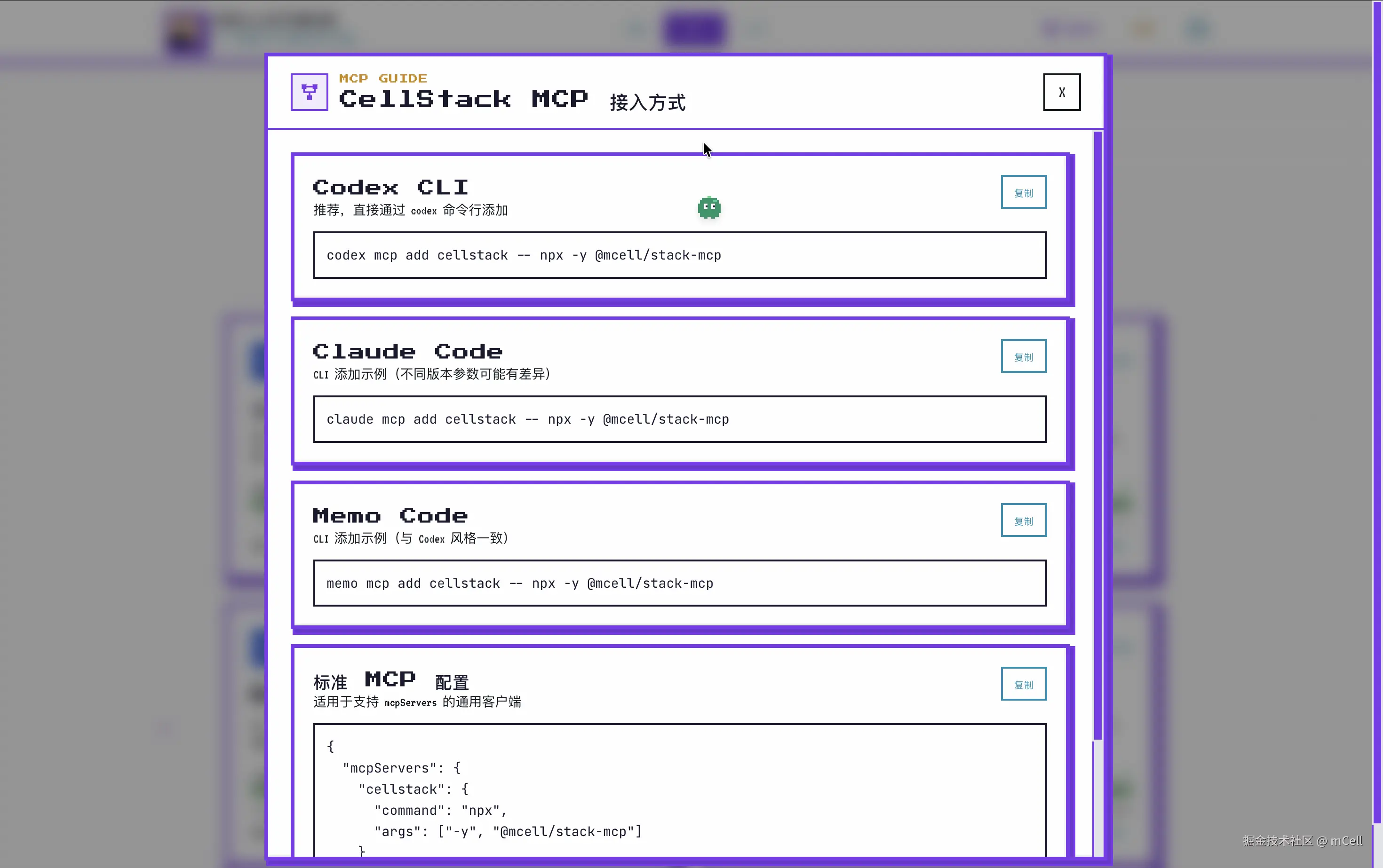 memo mcp add stack-mcepp npx -y @mcell/stack-mcell