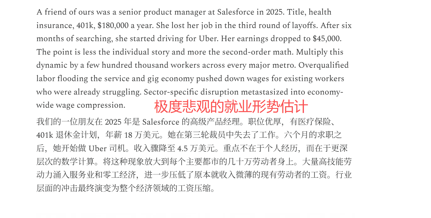 这篇预测的核心恐吓点可以总结为“白领护城河的三大崩塌”: