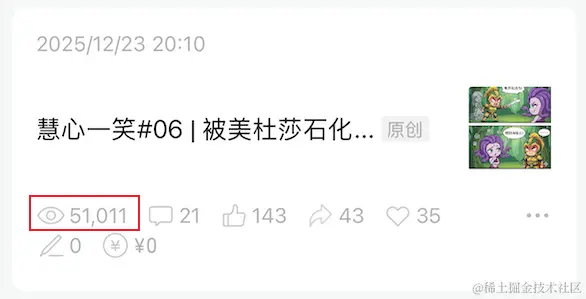 在 2025年的尾巴上,发生了一件非常有趣的事,我在微信公众号上的 AI 四格漫画 意外爆火。之前公众号上发的技术文章,基本上阅读量不过 300,每天广告收益也就几毛钱。目前最火的美杜莎,浏览量已经达到惊人的 5W。这样让我不禁感叹:
